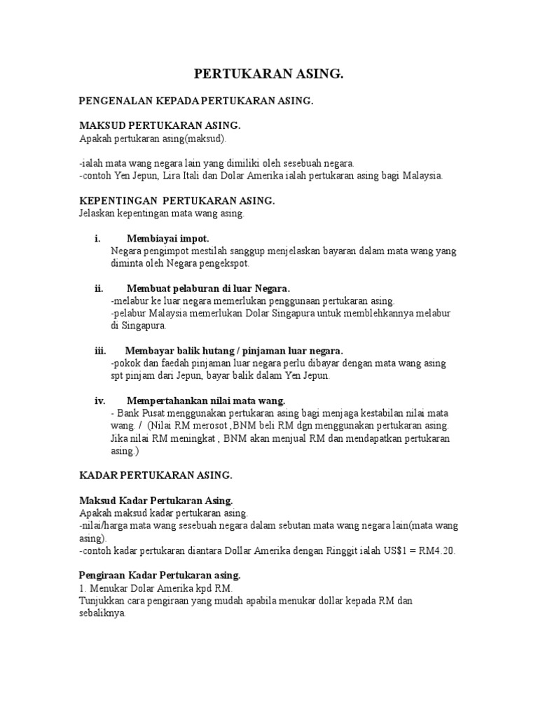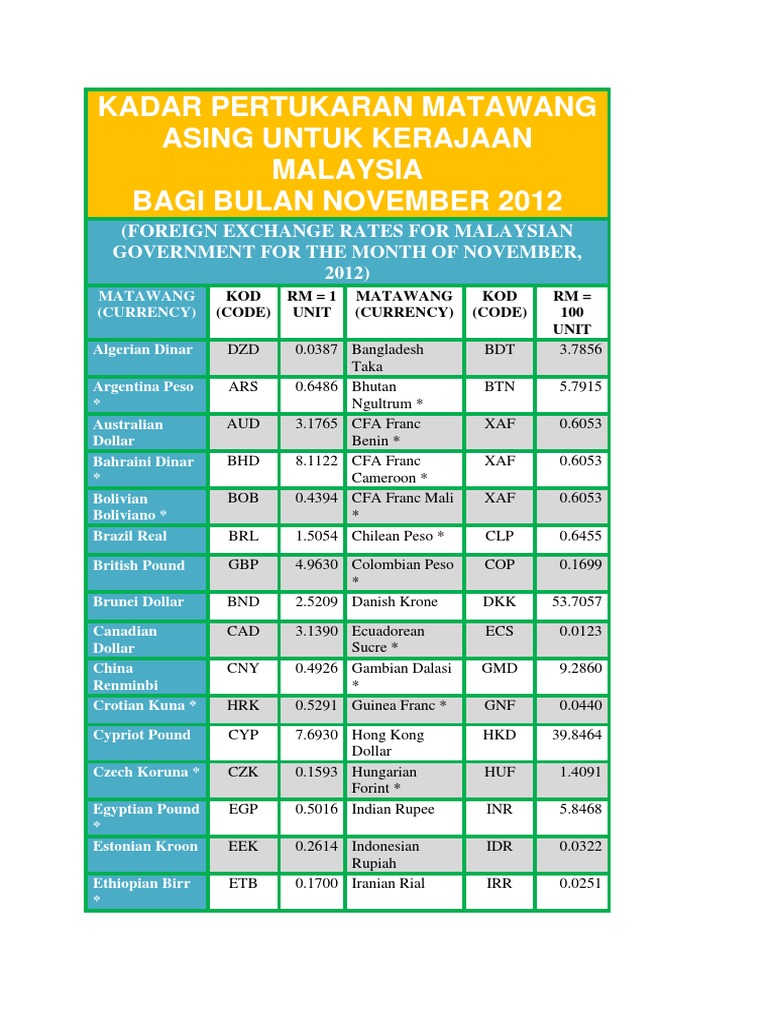 Kadar Pertukaran Matawang Asing Untuk Kerajaan Malaysia Pdf